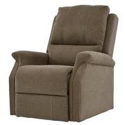 The Bailey Brown Power Lift Recliner is the perfect fit for your living room. You will find that the light coffee brown performance fabric is soft and slightly textured with a tufted seat and back for comfort while the motorized power lift is controlled with a remote to reach a nearly lay flat position. For your convenience, a side storage pocket hides your remote when not in use.